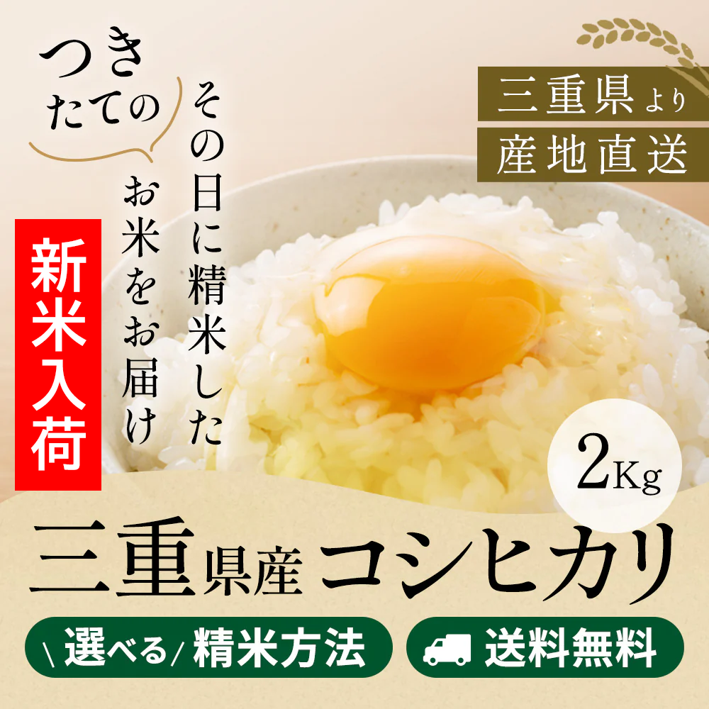 令和7年産 新米 三重県産コシヒカリ 玄米2kg 送料無料 選べる精米方法 米ぬか無料 こしひかり 白米 無洗米 3分づき 5分づき 7分づき 米 2キロ